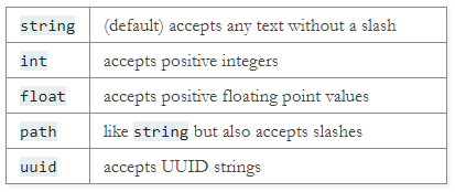 파이썬 flask에서 변수를 받을 때 주의할 점은 <> 화살표 괄호 안에 받는 형태를 정의해야한다. 그리고 변수의 형태를 정의하지 않으면 기본값은 string으로 인식되어 간다.