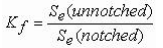 Stress-Life 그래프에서 Notch의 효과는 피로 노치 계수 Kf(피로 스트레스 집중 계수라고도 함)에 의해 설명된다. 피로 노치 계수는 노치없는 이상적인 재료의 피로 강도(철금속 내구성 한계)와 노치 피로 강도와의 비율이다. 아래 식을 참조하자