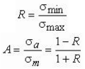 완전 "reversed stress cycle" 조건의 경우 R은 -1과 같습니다 양과 음이 같은 크기의 진폭을 가지기 때문입니다. 정적 로드의 경우 R은 1과 같습니다. 평균 응력이 응력 진폭과 같은 경우 R은 0입니다(스프링처럼 같은 힘으로 댕겼다가 복귀). R 0.1의 응력 주기는 항공기 구성요소 시험에 종종 사용되며, 최소 응력이 최대 응력의 0.1배인 장력-장력 주기에 해당한다.