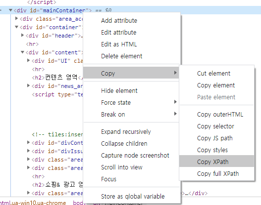 xpath를 가져오는 방법은 아래와 같다.