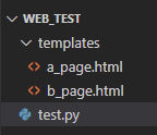 test.py 에서 flask를 동작 시키는 우선 /goto_a_page 에 접속하면 render_template 가 a_page.html 파일을 templates 폴더에서 로딩해준다.