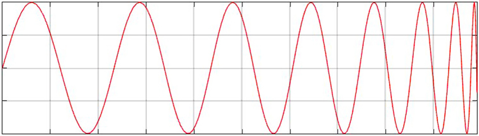 - 선형적(Linear) 사인 sweep wave : 주파수가 시간에 비례해서 증가한다.