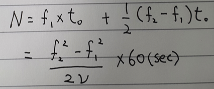 N은 The number of cycle 이다. 그림4는 면적을 구하는 식이다. 마지막에 60초를 곱한 이유는 앞서 가정은 분(minute)로 설정한 속도이기 때문이다. 그림4를 통해 주파수(frequency) 와 Sweep 속도(velocity) 만 알고 있다면 사이클 수를 알 수 있다.