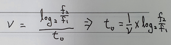 그림6은 f1~f2의 Octave 값을 t0로 나눈 값으로 속도가 된다. 해당 식을 통해 t0의 값을 구할 수 있다.
