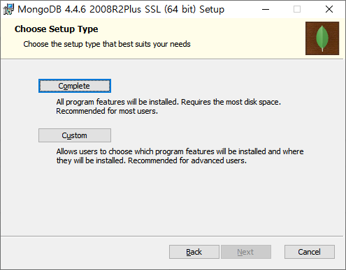 4. Complete 를 실행한다. 설치하고자 하는 폴더를 변경하고 싶으면 Custom을 실행한다(그림4)