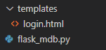 구성은 그림1과 같다. templates 폴더 안에 login.html 파일이 있고 밖에는 flask_mdb.py 파일이 있다.