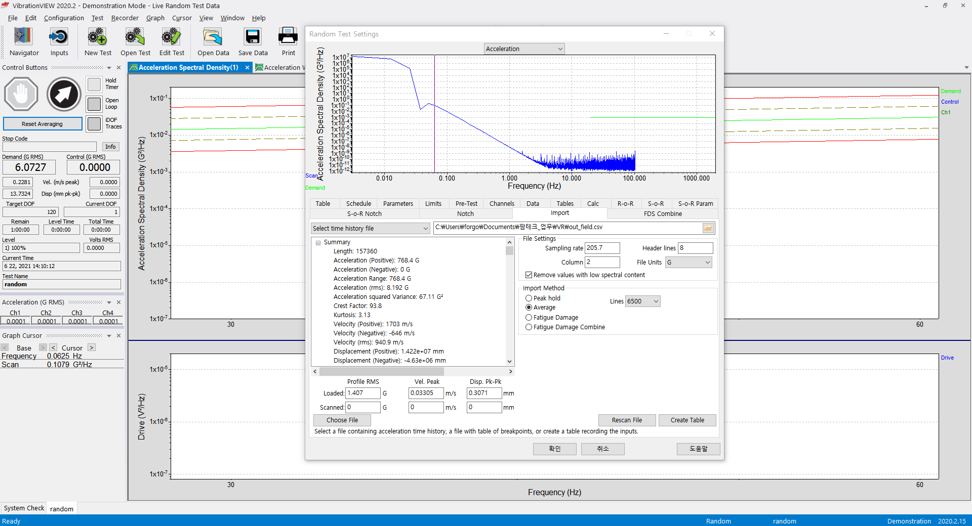 Random 시간파형(Field 측정값) 을 사용하여 PSD(Power Spectral Density) 만들기 예제