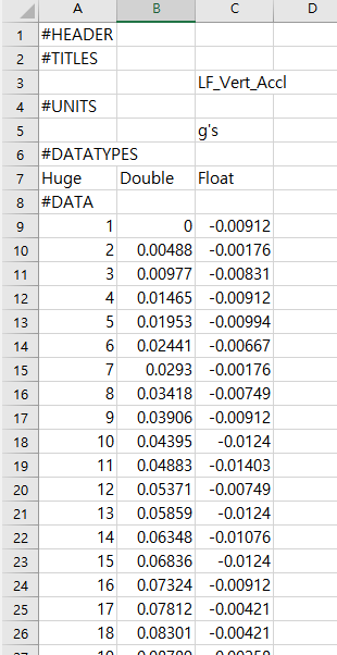 random 시간 파형은 차량에 가속도 센서를 설치하고 거친 노면에서 시험한 가속도 값을 csv 파일로 만들었다. 아래 그림1은 해당 정보의 일부 이다.