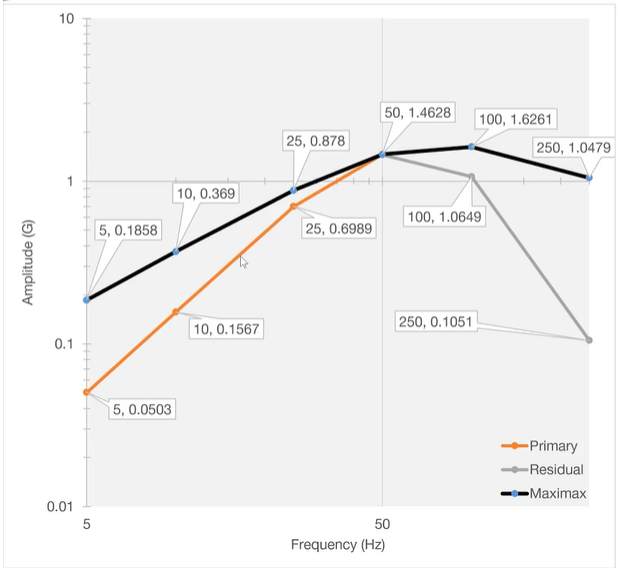 : Primary SRS은 충격 발생시 SRS, Residual은 발생 후 SRS, Maximax는 두개를 합친 것임