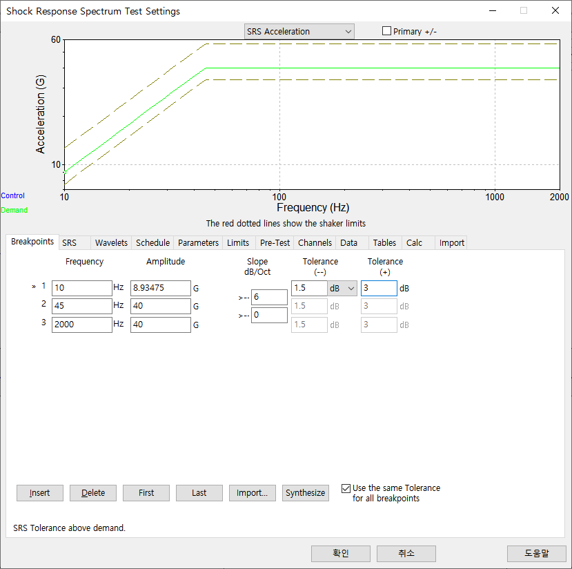 - DUT가 저주파 공진이 적으면 SRS 저주파 부분을 tolerance를 벗어나게 하고 고주파 tolerance 를 좁힌다.