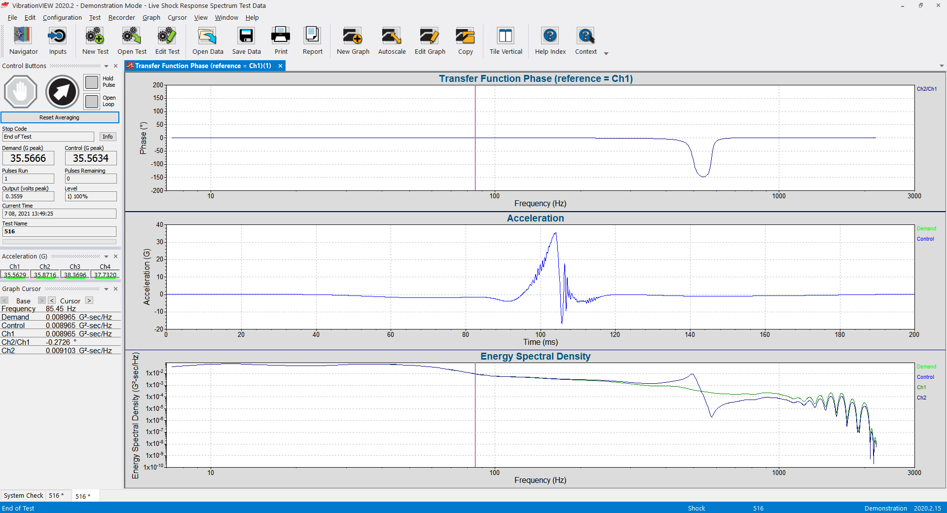 진동 시험기 제어 장치 소프트웨어를 시뮬레이션 모드로 동작시켜서 진행함. 소프트웨어는 VR(Vibration Research) 제품을 사용하였다. (https://vibrationresearch.com/)