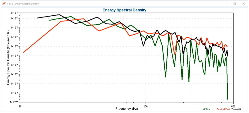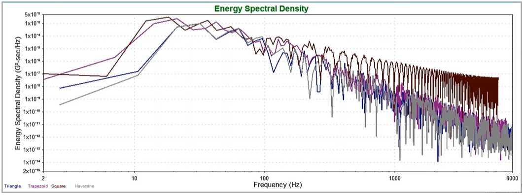 - 고주파 영역에서 Half Sine Pulse(녹색선)은 구멍(hole)처럼 ESD(Energy Spectral Density)가 떨어짐