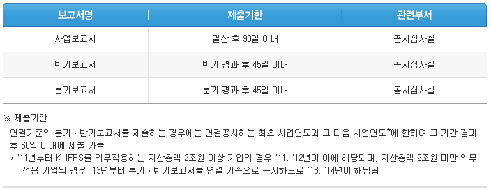 위 그림은 Dart에서 가져온 제출 일정이다. (https://dart.fss.or.kr/introduction/content2.do)