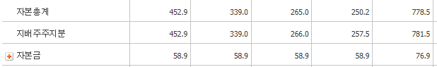 자기자본은 재무분석->재무상태표 에서 확인가능하다 앞서 조이시티는 자기자본(자본총계)이 크기 때문에 문제가 없다.