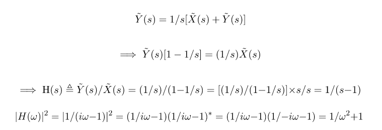 그림2의 수식을 통해 최종적으로 전달함수의 크기를 구할 수 있다. 주파수가 w -> 0 에 가까지 가면 1이되고 w -> 무한대 로 가면 0이 된다. 즉, 저주파 통과 필터 (low pass filter)의 특성이다. x(t) 신호는 그러므로 저주파 통과 필터를 지나게 되는 것이다.
