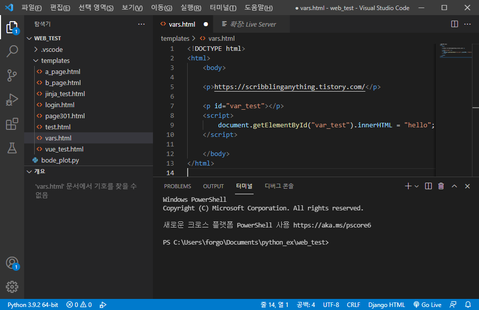 3. 다시 코드로 돌아가서 오른쪽 하단에 "Go Live" 를 클릭한다.