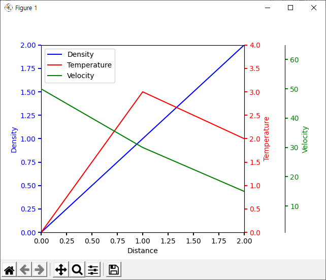 par2.spines["right"].set_position(("axes", 1.2)) 에는 velocity 축이 들어가는데 오른쪽에 배치하고 기존 그래프에서 1.2 정도 떨어뜨려서 배치 한것이다.