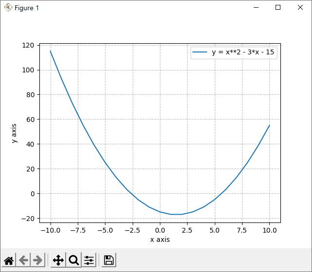 내가 만든 코드에 방정식 추가하기 부분에 수식만 약간 변경해주면 쉽게 그래프를 그릴 수 있다. 이미 알겠지만 수식에서 제곱은 파이썬 코드에서 ** (쌍별표) 로 표기 한다.