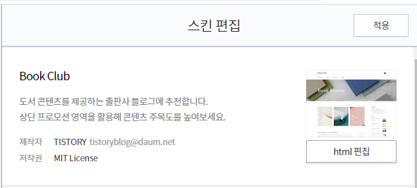 - 사용 중인 스킨(Skin) : 북 클럽(Book Club)