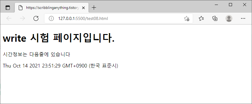 HTML DOM write() 시간 표현 및 HTML 코드 예제