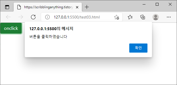 alert("버튼을 클릭하였습니다");