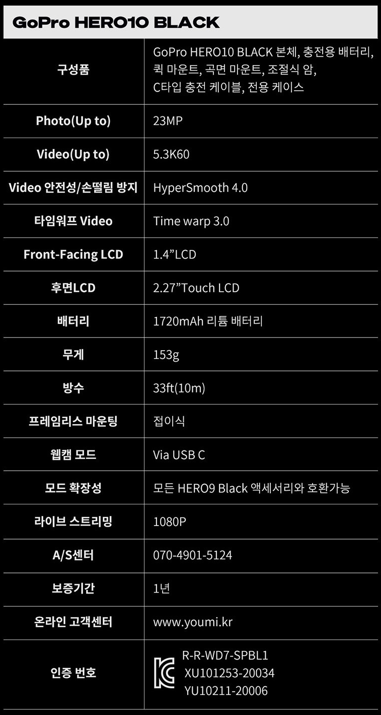 액션캠 리뷰 - 고프로 히어로10 (GoPro Hero10) : 상세 스펙