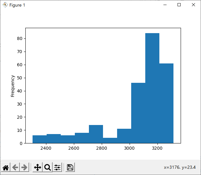 마지막으로 히스토그램(histogram)으로 코스피(Kospi) 값을 표현해보겠습니다.