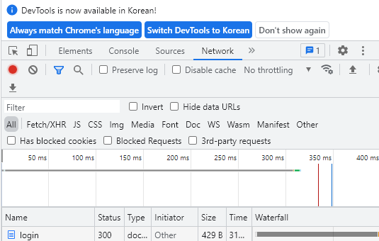 이번에는 코드에서 설정 한대로 300번의 상태 코드가 발생하였습니다.