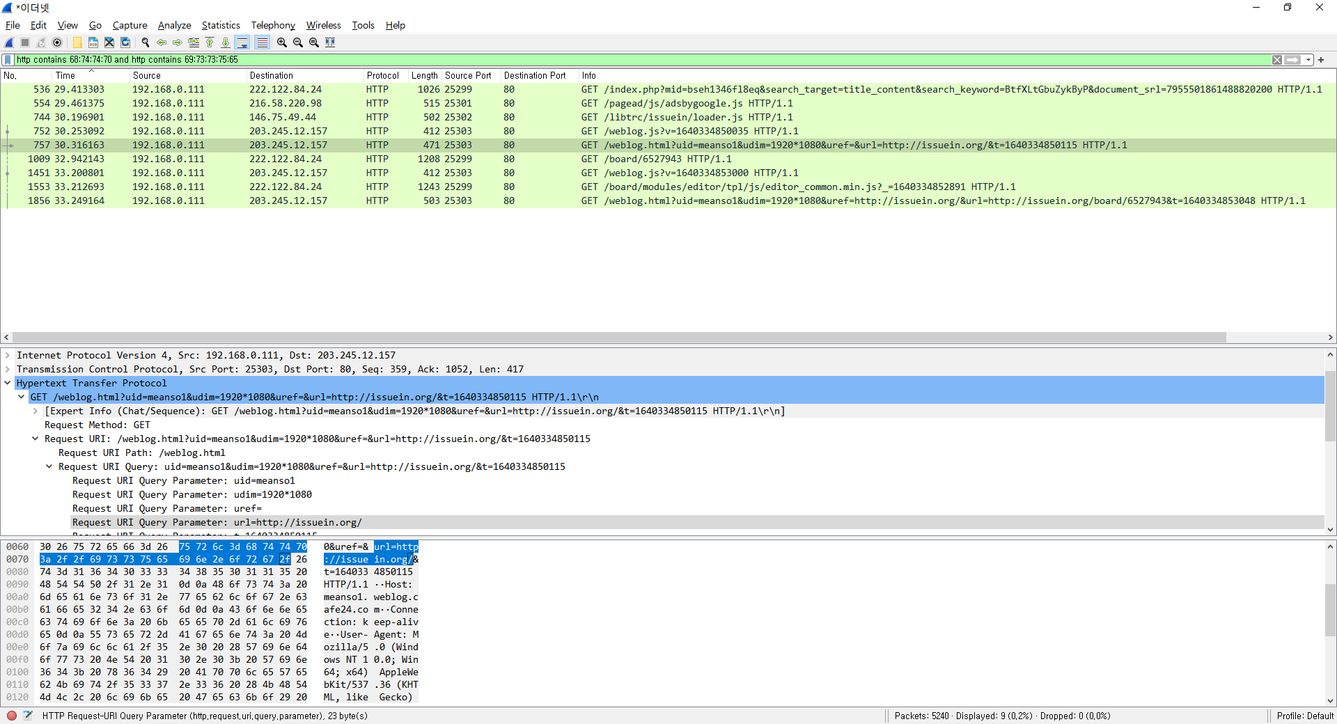 - HTTP층에 "http"라는 문자와 "issue"라는 문자를 포함하고 있다.