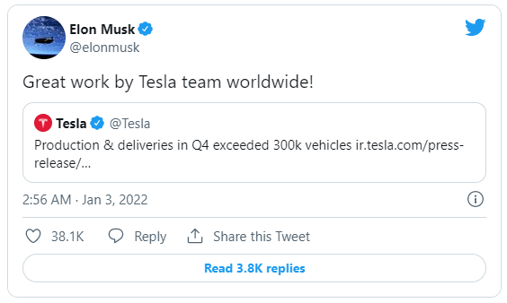 테슬라에서는 매년 약 50퍼센터의 판매량을 증가하겠다고 발표하였고 이번 판매는 이미 목표치를 상회하였습니다. 지난 11월 테스라 CEO 일론 머스크(Elon Musk)는 판매량에 맞추기 위해 제조를 서두르지 말고 원가 절감에 집중할 것을 내부적으로 전달 하였습니다. 그리고 12월 쯤에는 캘리포니아와 중국에서 생산되는 차량 수가 목표치 완료를 도울 것이라고 하였습니다.