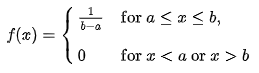 아래는 균등 분포를 확률 밀도 함수(Probability density function)으로 표현한 수식과 그래프 입니다.