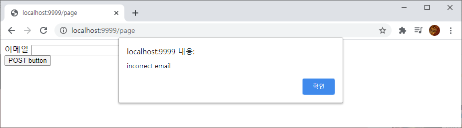 alert("incorrect email");