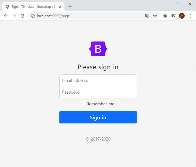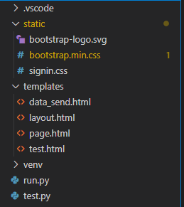 그중에 bootstrap-5.0.0-beta1-examples\bootstrap-5.0.0-beta1-examples\sign-in\index.html 파일을 열어서 소스코드를 가져와서 예전에 작업했던 page.html 파일에 덮어 씌운다. page.html과 flask 동작 예제는 아래 링크에 있다.