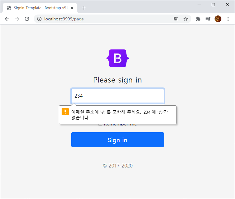 그리고 jquery나 flask에서 손수 정의했던 로그인정보를 잘못입력했을때 나오는 정보는 bootstrap에서 알아서 아래처럼 적용되게 바꼈다.