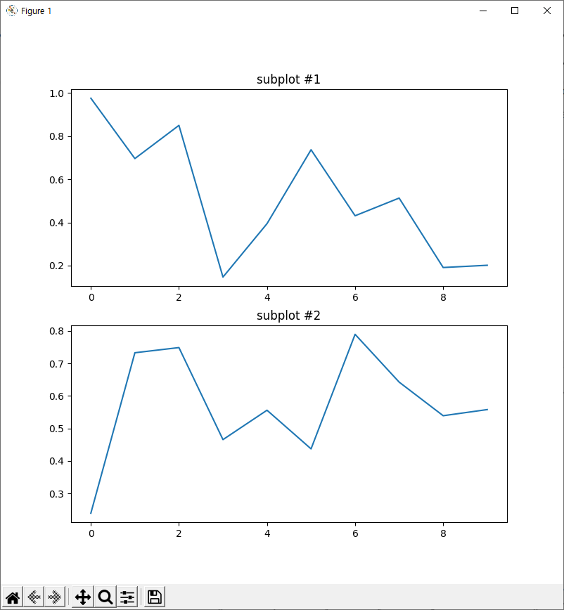 9, 16번 라인: subplot 함수로 추가 그래프를 만듭니다. 3개의 인자가 들어가는데 첫번째는 행(Row) 개수, 두번째는 열(Column) 개수, 세번째는 Index 번호 입니다.