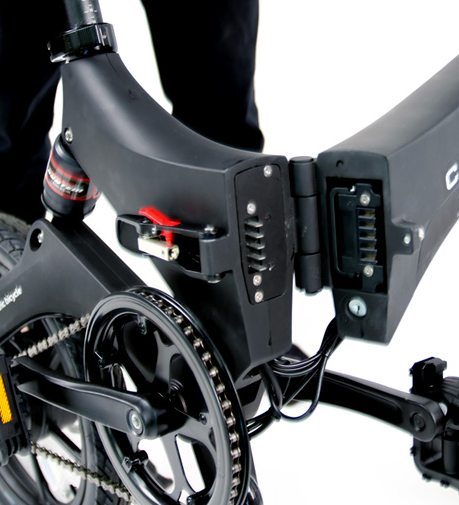 그리고 e까미노 아톰 전기자건거는 폴딩(Folding / Foldable)이 가능 합니다. 자전거를 접어서 이동할 때 불편한데 아래 그림처럼 보조 바퀴가 있어서 접어서 이동할때도 쉽게 이동 할 수 있습니다.