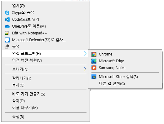 윈도우(Window)를 사용하시면 PDF를 열때 기본 프로그램으로 Microsoft Edge에서 열어 줍니다. 확인하는 방법은 아래와 같이 pdf 파일에서 마우스 우클릭하면 아래와 같이 연결프로그램을 선택할 수 있습니다.