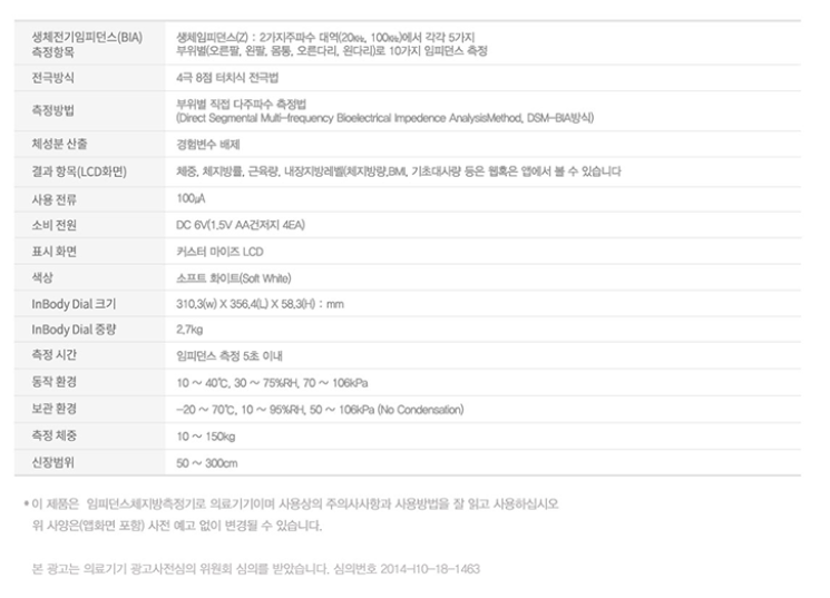 인바디 다이얼 체중계 상세 스펙(Specification)