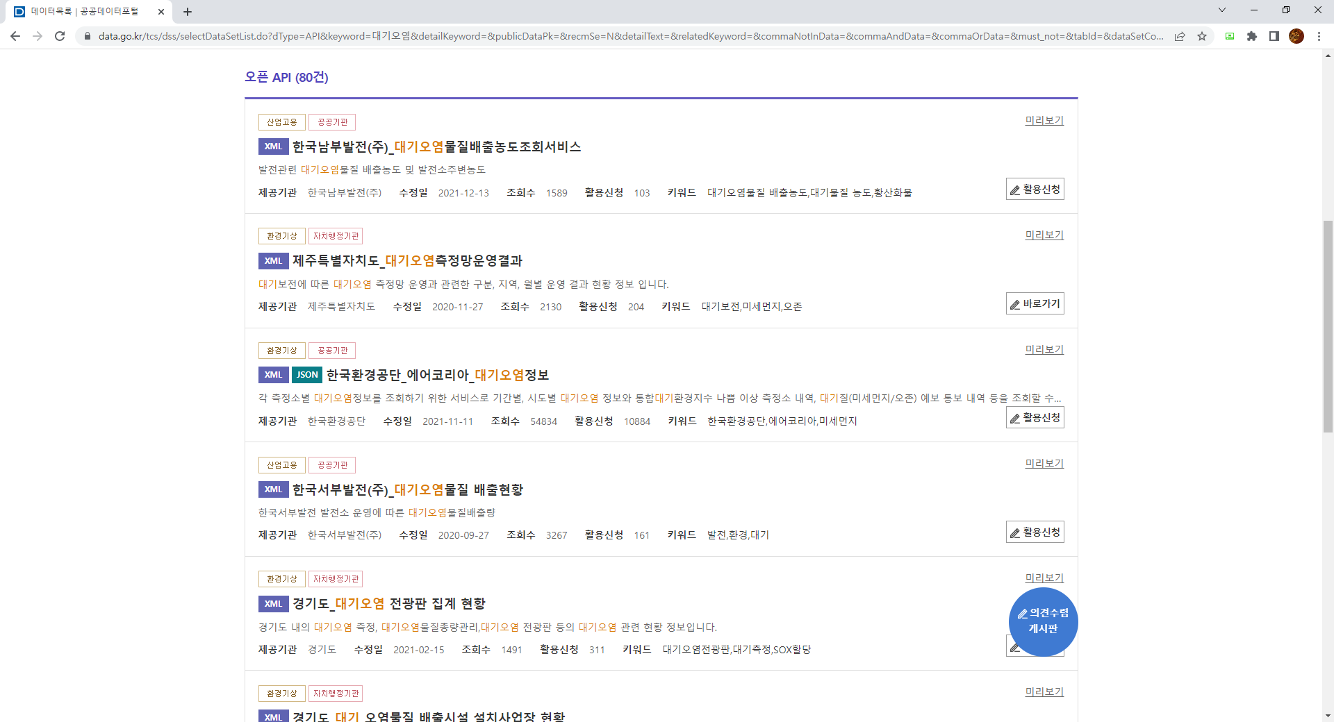 1. 검색창에 아래와 같이 대기오염을 검색합니다.