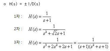 아래 수식은 Butterworth 저주파 통과(Low Pass filter)에 관한 수식 입니다.