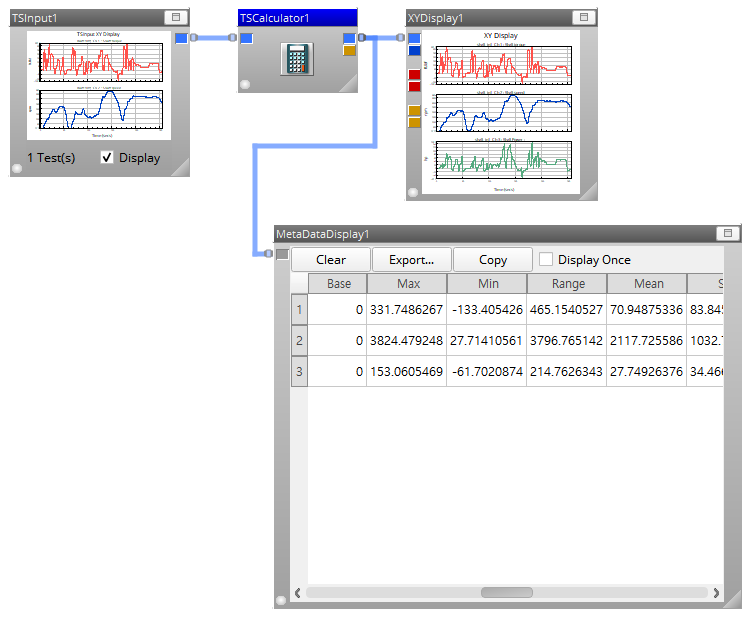 왼쪽 상단에 빨간색 그림이 샤프트의 토크 값(lbf)이고 파란색이 속도(rpm) 값입니다. 계산기를 거쳐서 오른쪽 상단에 녹색 그래프를 만들었습니다.