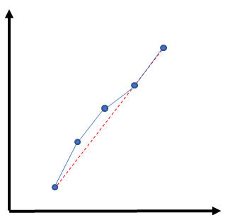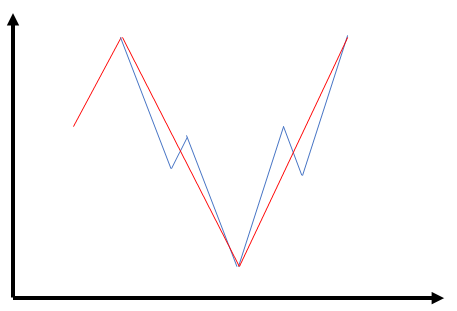 위 그림처럼 5개의 포인트로 측정한 값이 Peak Valley 필터를 사용해서 빨간색 점선으로 단순화(Simplification) 처리 되었습니다.
