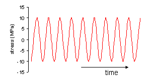 위 그림은 시간이 흐름에 따른 Stress(응력, 하중)이 일정한 주기로 Loading, Unloading 하는 그래프 입니다. 위 그래프는 일정 사이클로 10~-10MPa의 힘이 반복되는 간단한 그래프로 약 9 사이클의 Counting 값을 쉽게 구할 수 있습니다.