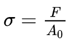 면적이 A0인 표면에 힘 F가 가해질 때 응력은 위와 같이 표현 됩니다.