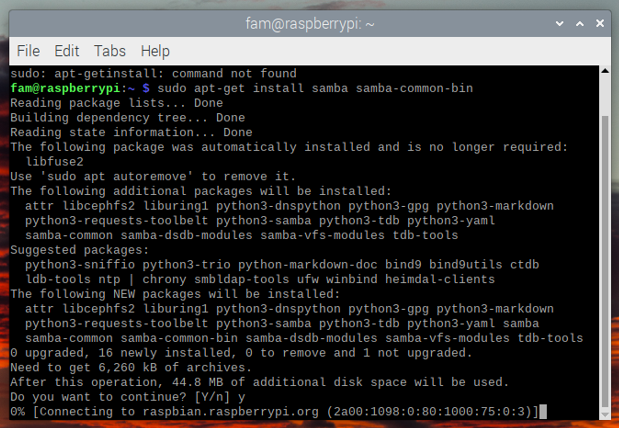 sudo apt-get install samba samba-common-bin