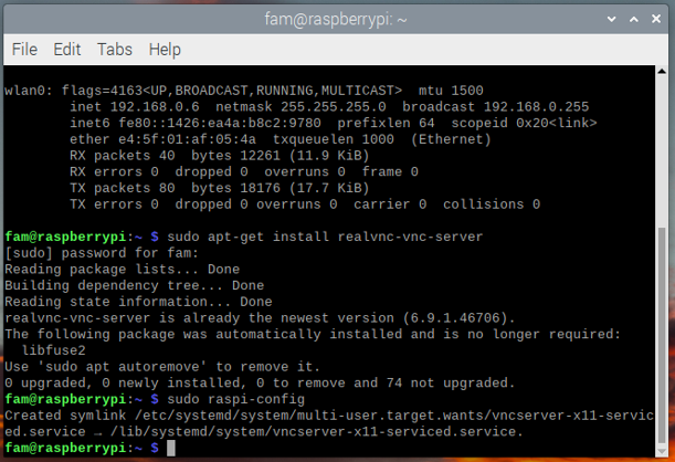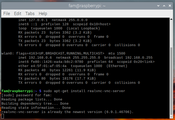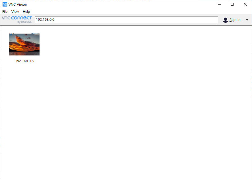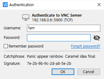 5. VNC 서버 아이피 주소(IP Address) 192.168.0.6을 확인합니다.