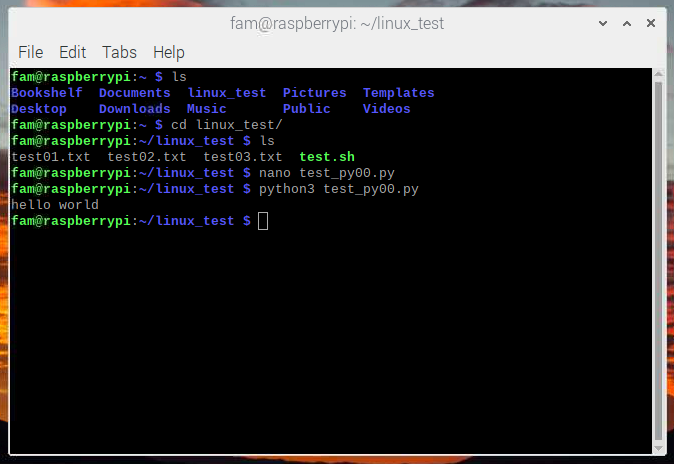 그림과 같이 python3 test_py00.py를 실행하였고 hello world가 출력됨을 확인할 수 있습니다.