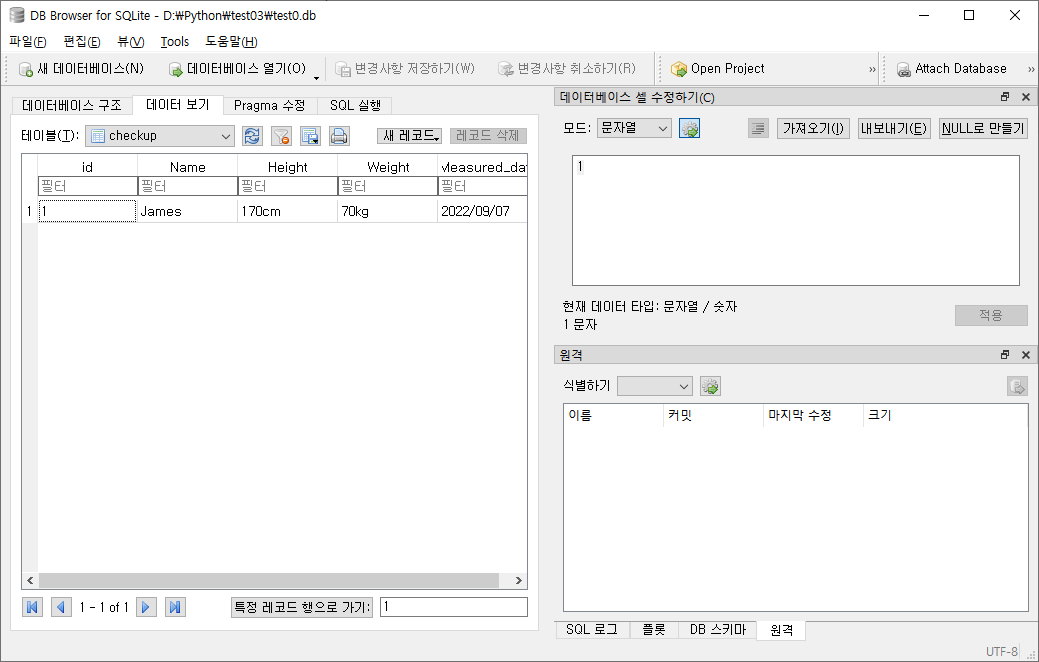 데이터 입력을 위해서 파이썬 함수 execute로 SQLite 명령을 실행하고 commit으로 변경 내용을 저장합니다.