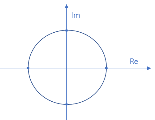 위 복소수의 값이 에너지 신호인지 파워 신호인지 확인해보겠습니다. 위 신호는 2의 크기로 90도씩 회전하는 신호 입니다.