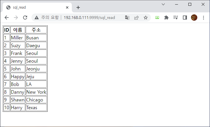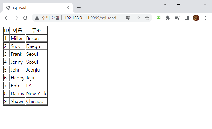 8번 라인: 추가 결과를 sql_read.html에서 보여 줍니다.